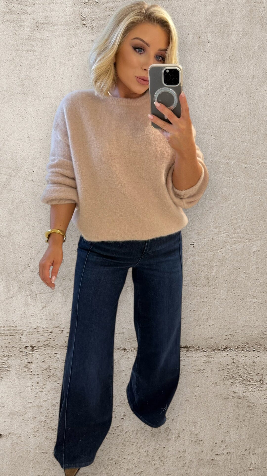 The Vienna Knit is the epitome of understated luxury -a soft beige dream spun from a baby alpaca and wool blend that feels as heavenly as it looks. With its relaxed silhouette, slightly ballooned sleeves, and effortlessly chic drape, this piece brings quiet sophistication to your everyday edit.