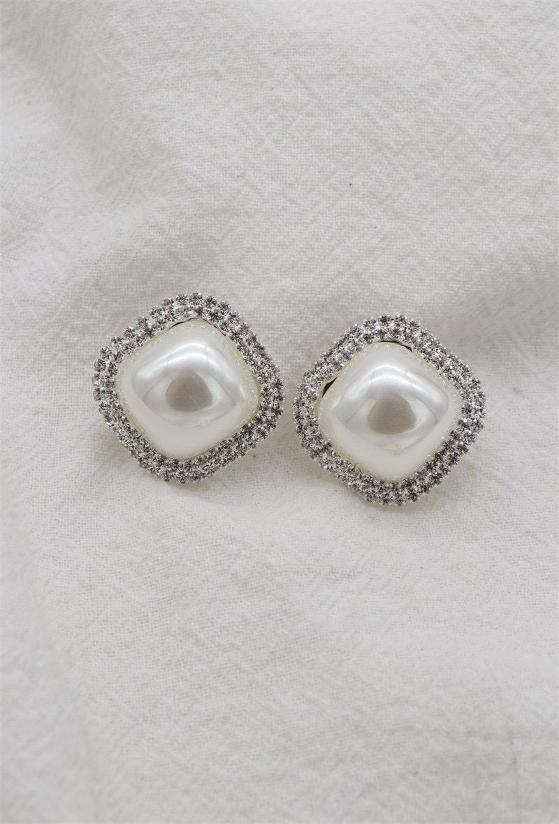 Elevate your style with the Audrey Pearl Luxe clip-on earrings, a stunning blend of timeless elegance and modern sophistication. Designed for lovers of classic luxury, these pearl earrings feature a luminous cushion-cut imitation pearl surrounded by a dazzling double halo of diamanté stones, creating a radiant and refined finish.