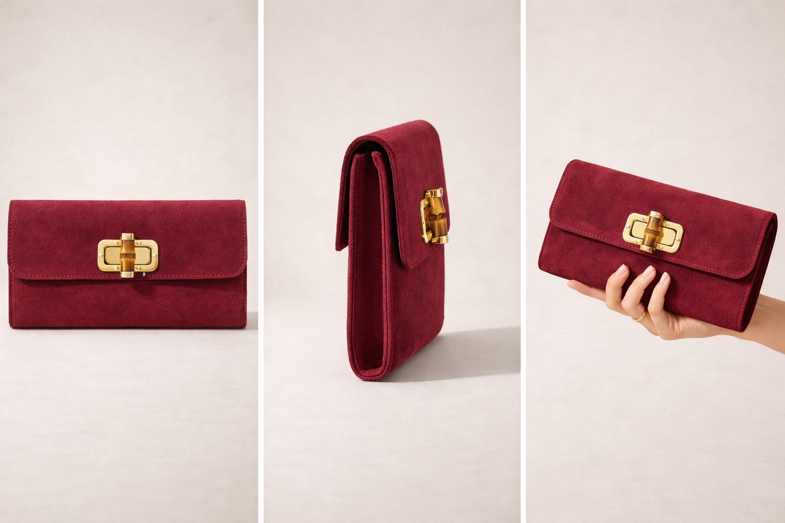 THE VERONA SUEDE CLUTCH - BURGUNDY