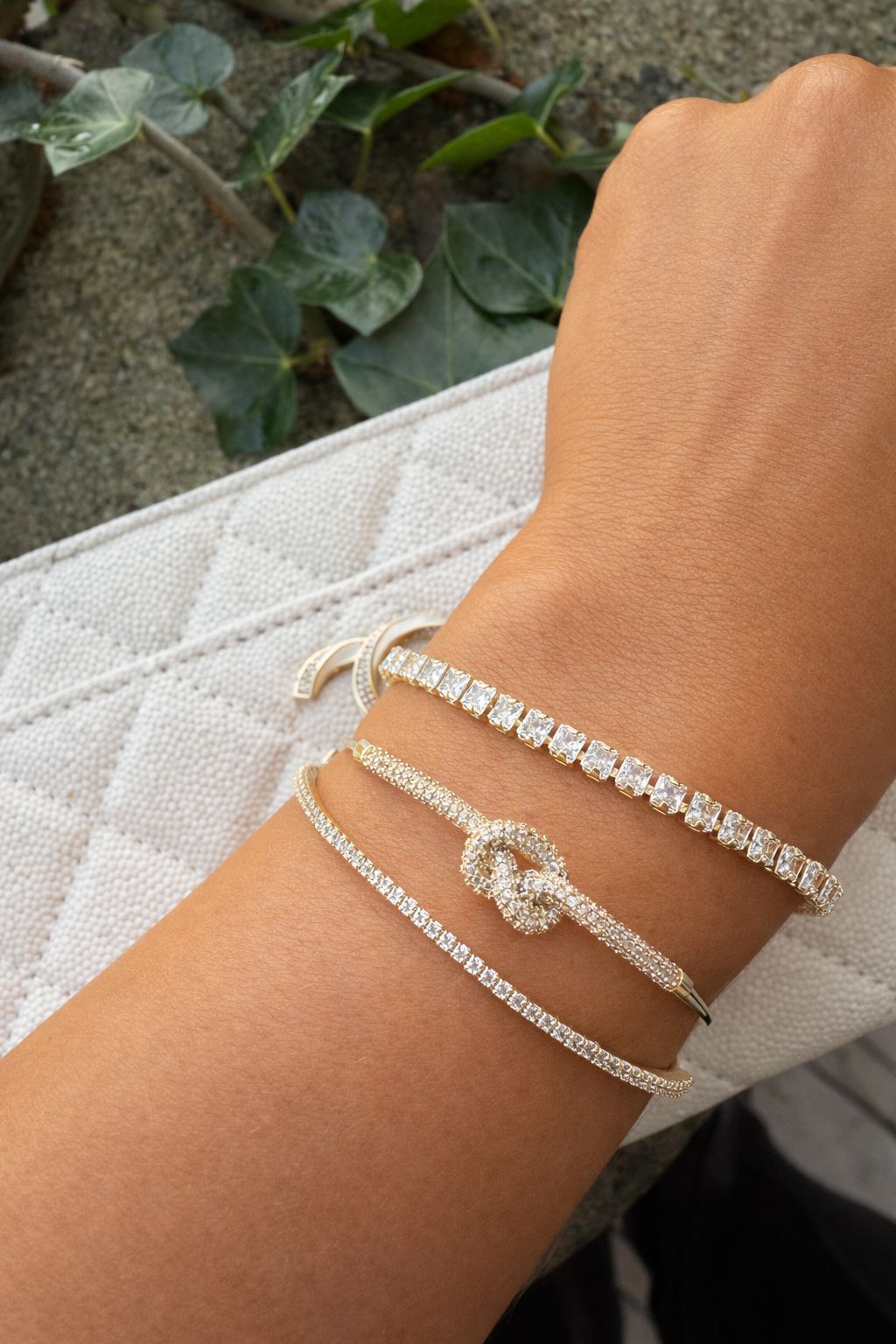 Wear it solo for elegant impact or stack it with your tennis bracelets for a full glam wrist moment.