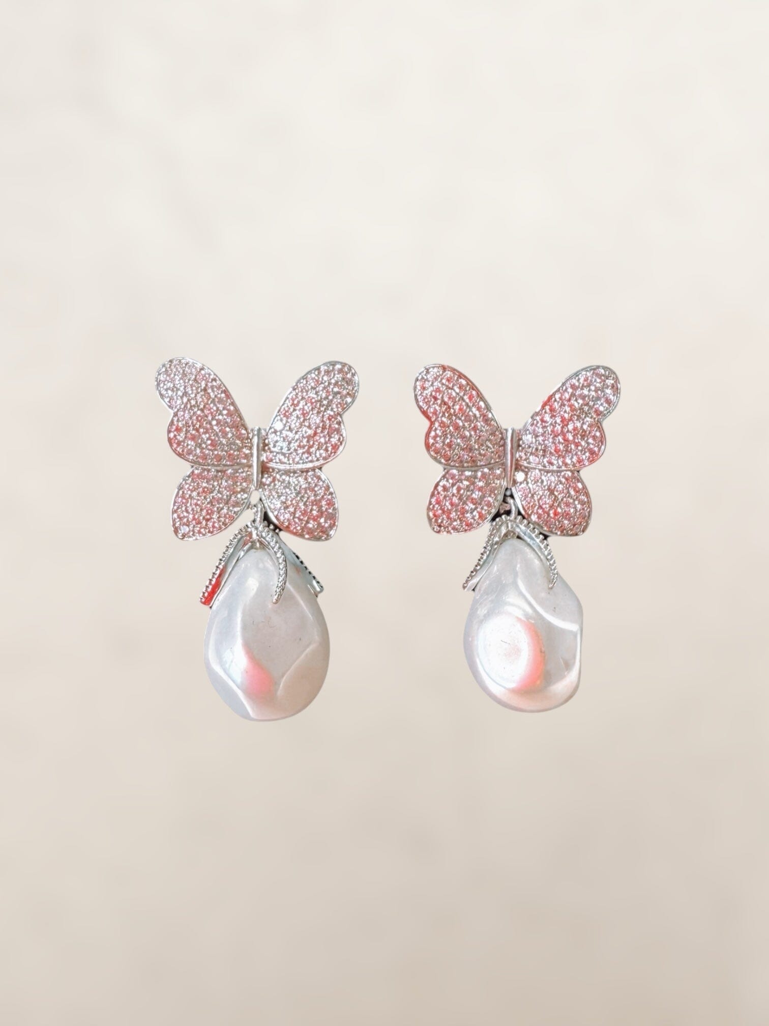 |Delicately chic, our Aurelia Drops pair shimmering pink crystal butterflies with luminous baroque pearls for a look that’s both feminine and refined. Lightweight, elegant, and perfect for elevating any outfit from day to night.