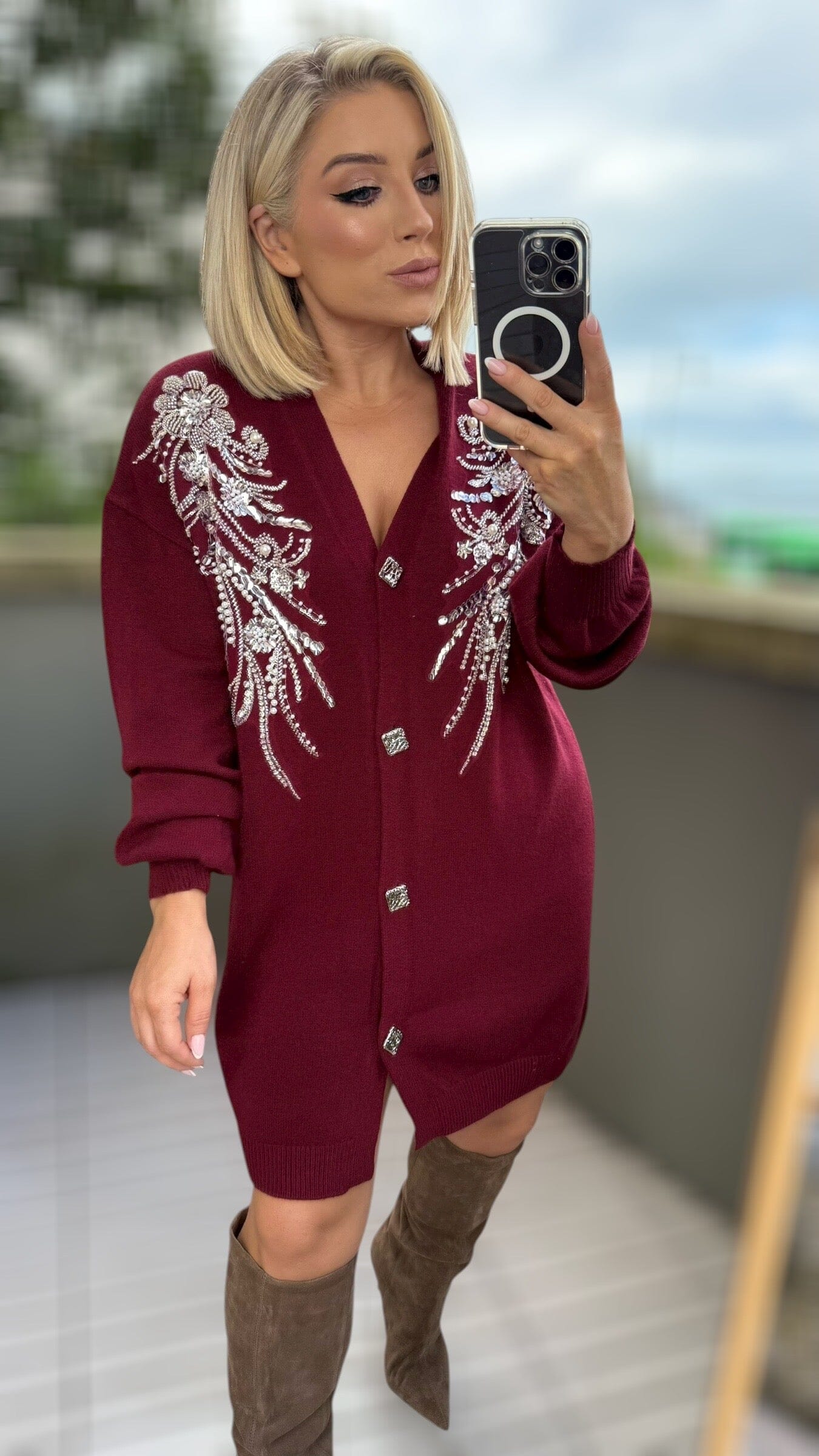 THE AURELIA EMBELLISHED KNIT DRESS - BURGUNDY