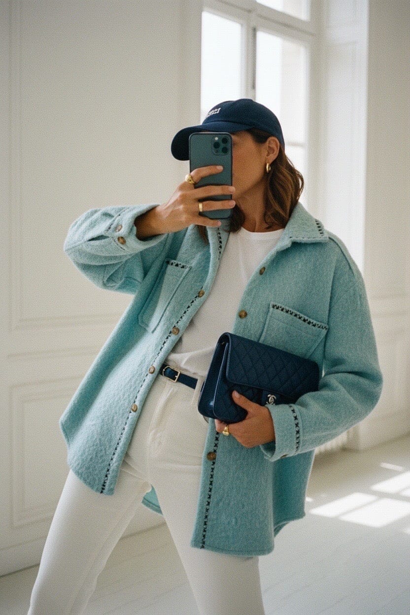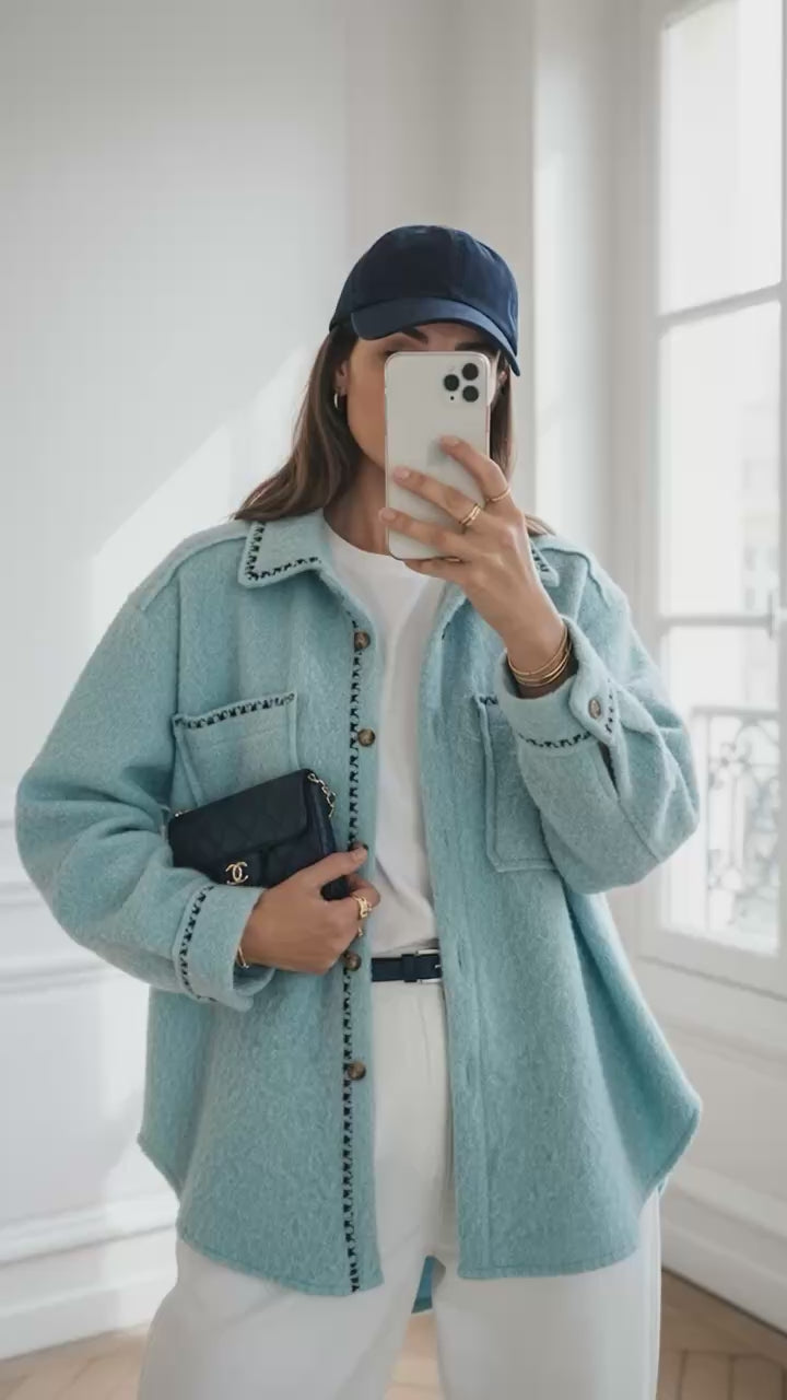 Wrap yourself in effortless winter chic with The Azure Jacket — a beautifully soft wool-blend layering piece in the most flattering turquoise blue. Designed with a relaxed, slightly oversized fit, this cosy jacket is perfect for January days when you want warmth without bulk.