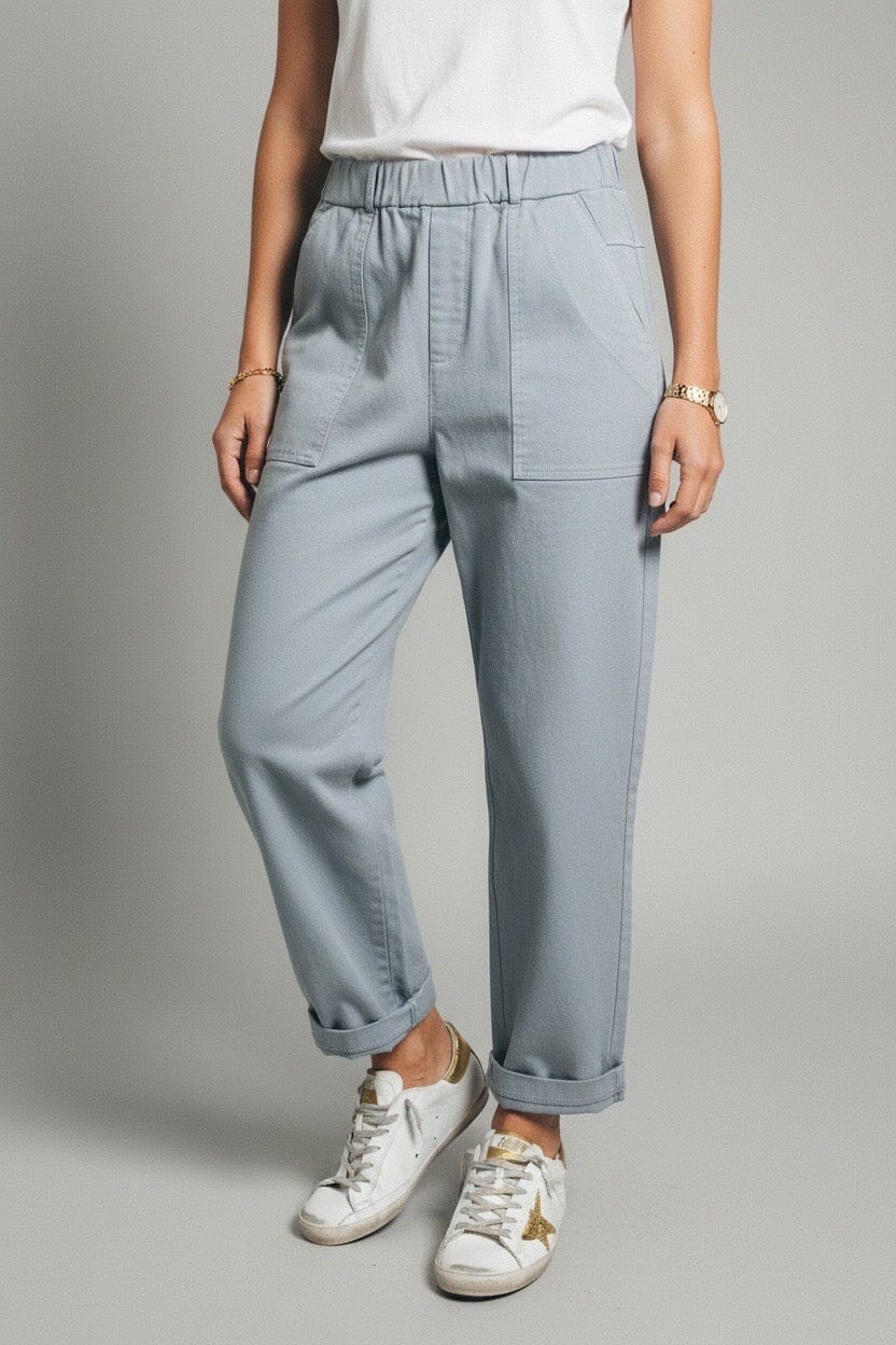 Meet your new everyday essential: The Elara blue Utility Joggers. Designed in a soft blue powder hue, these beautifully cut joggers are crafted from a breathable cotton blend with just the right amount of stretch for all-day comfort.