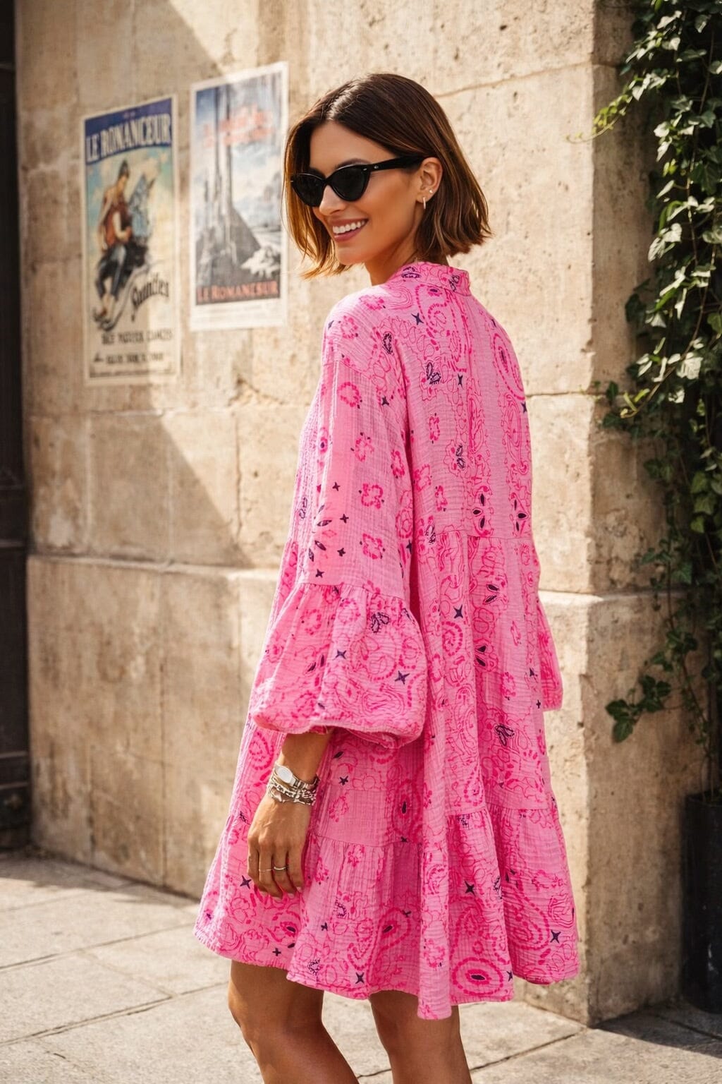 |Your go-to summer statement. The Isla Rosa Dress is crafted from 100% soft, breathable cotton in a vibrant pink with delicate boho print in navy. Designed in a relaxed, tiered smock fit with feminine bell sleeves and a button-front neckline, it’s effortless, flattering, and perfect for warm days.