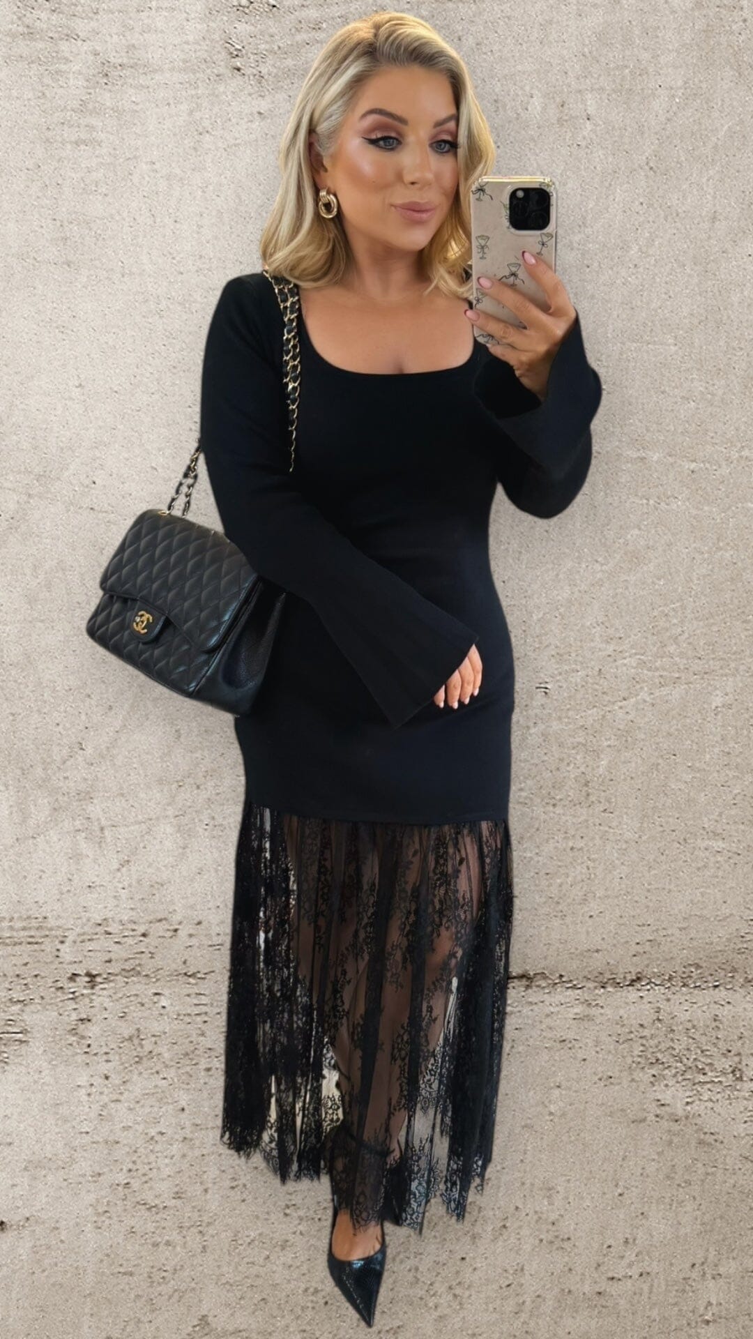 Effortlessly elegant with a modern edge, The Noire Lace Midi Dress is your ultimate wear-anywhere black dress with a twist. Crafted from a soft, stretchy fabric that skims the body beautifully, it features a flattering scoop neckline and subtle bell sleeves for a refined, feminine silhouette.