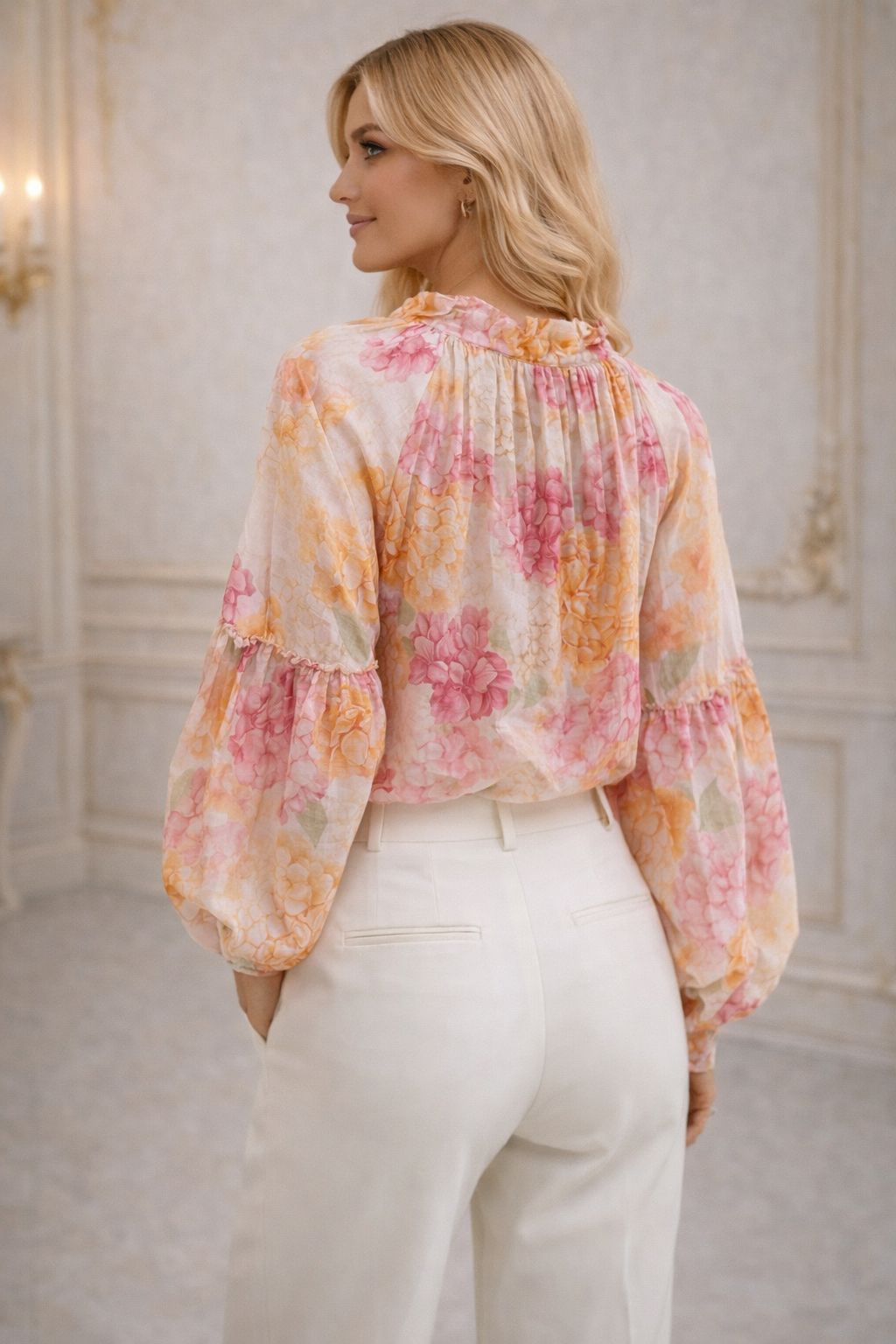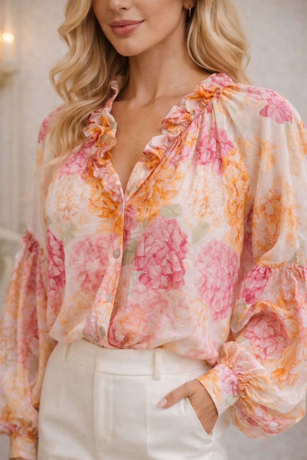 Designed with a relaxed, floaty silhouette, statement balloon sleeves and a delicate ruffled neckline, Ophelia drapes fluidly over the body for that perfectly undone, French-girl-in-spring vibe.