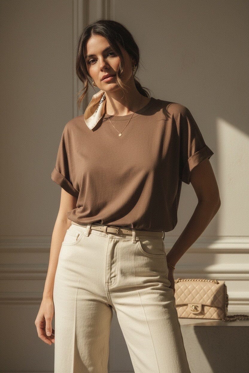 Meet your new forever staple — The Verona Cotton Tee is crafted from 100% premium cotton for a beautifully soft, breathable feel and an effortlessly luxe drape. Designed with a relaxed silhouette and softly rolled sleeves, this tee is all about understated sophistication.