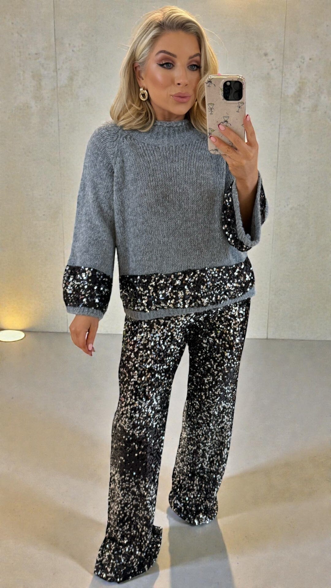 THE RIVIERA SEQUIN TROUSERS - GREY