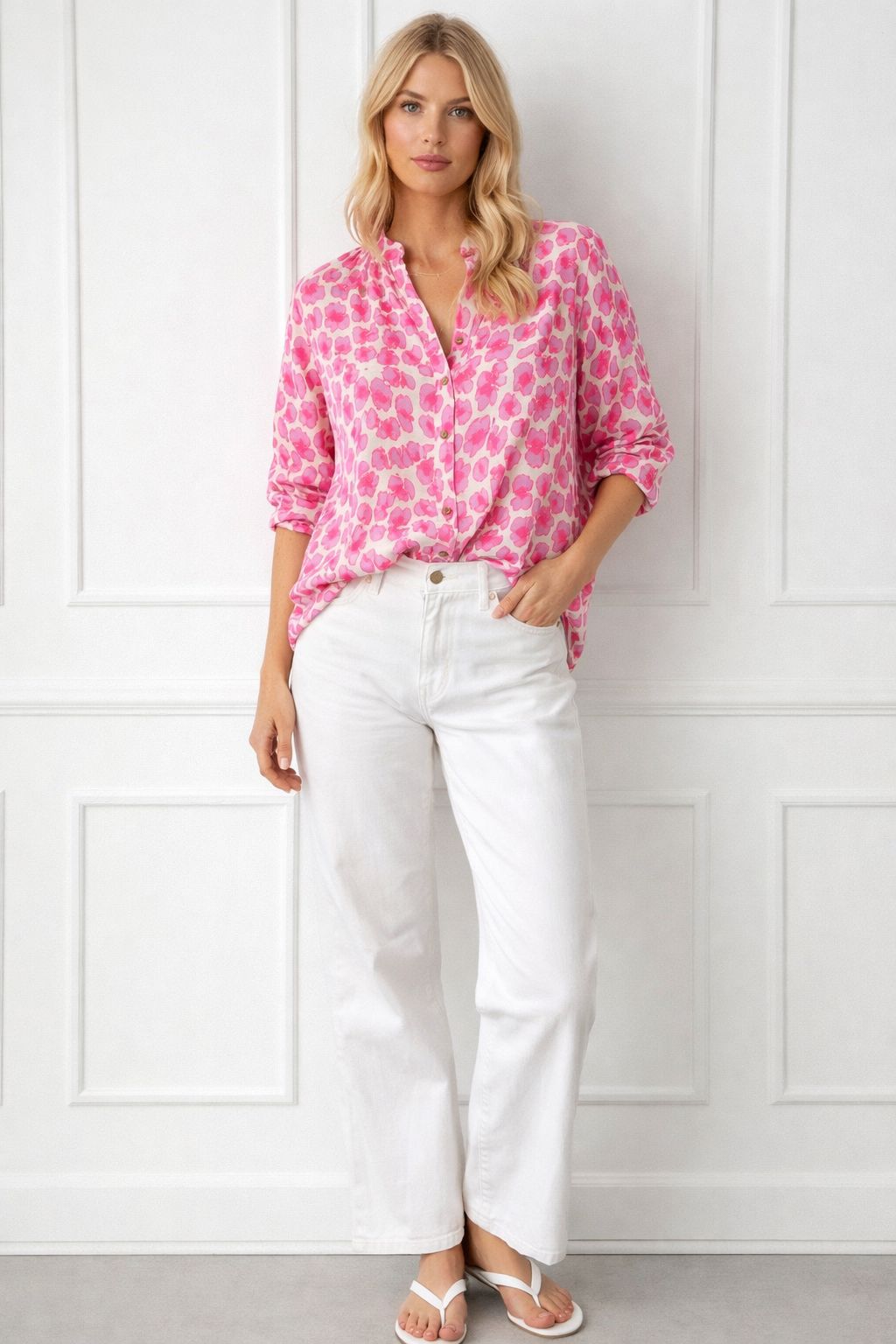 Crafted from a soft, breathable cotton, this relaxed-fit shirt features a bold leopard print in striking shades of pink, lilac and white. The lightweight fabric drapes beautifully, giving you that effortless, slightly oversized silhouette that looks styled without trying too hard.