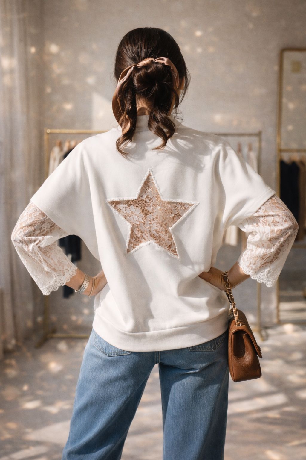 STELLA LACE STAR TOP - WHITE
