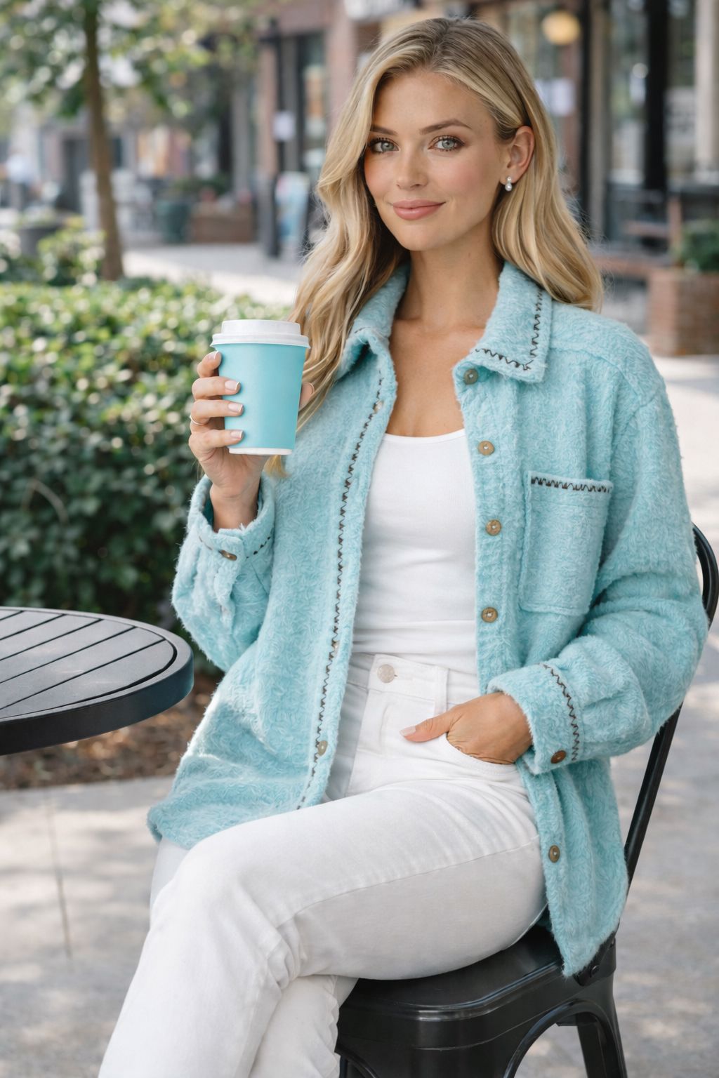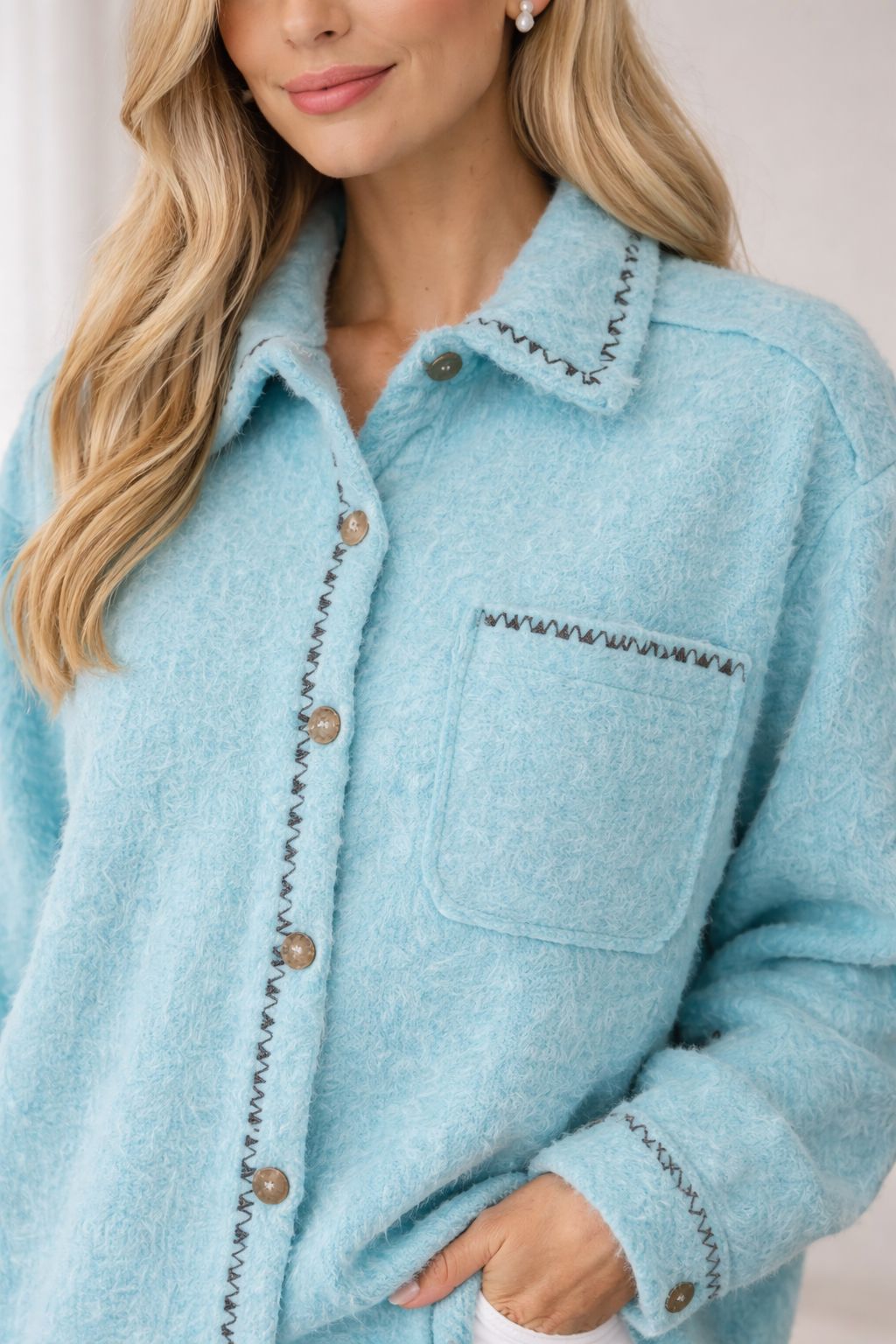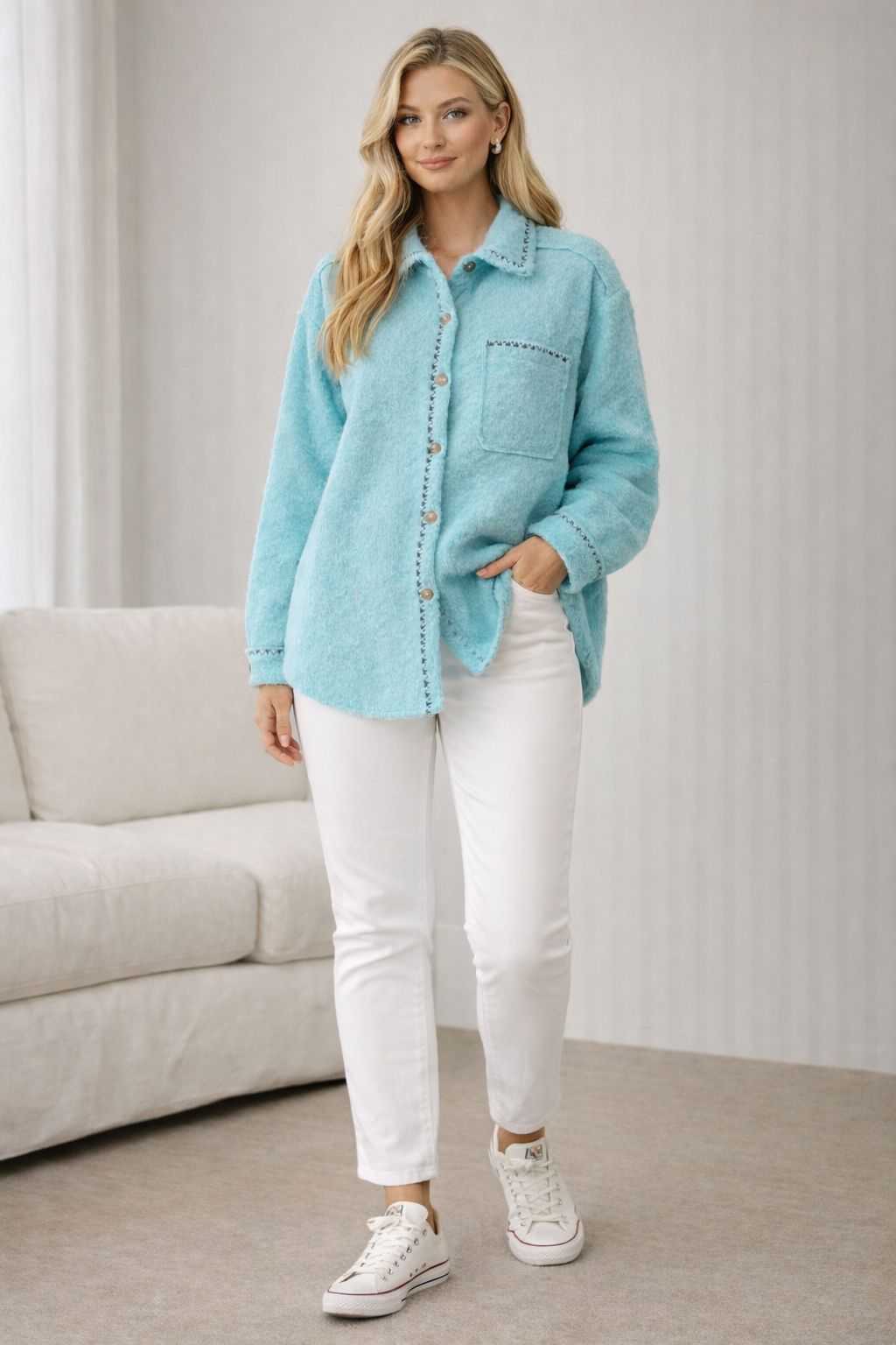 |Wrap yourself in effortless winter chic with The Azure shacket a beautifully soft wool-blend layering piece in the most flattering turquoise blue. Designed with a relaxed, slightly oversized fit, this cosy jacket is perfect for January days when you want warmth without bulk.