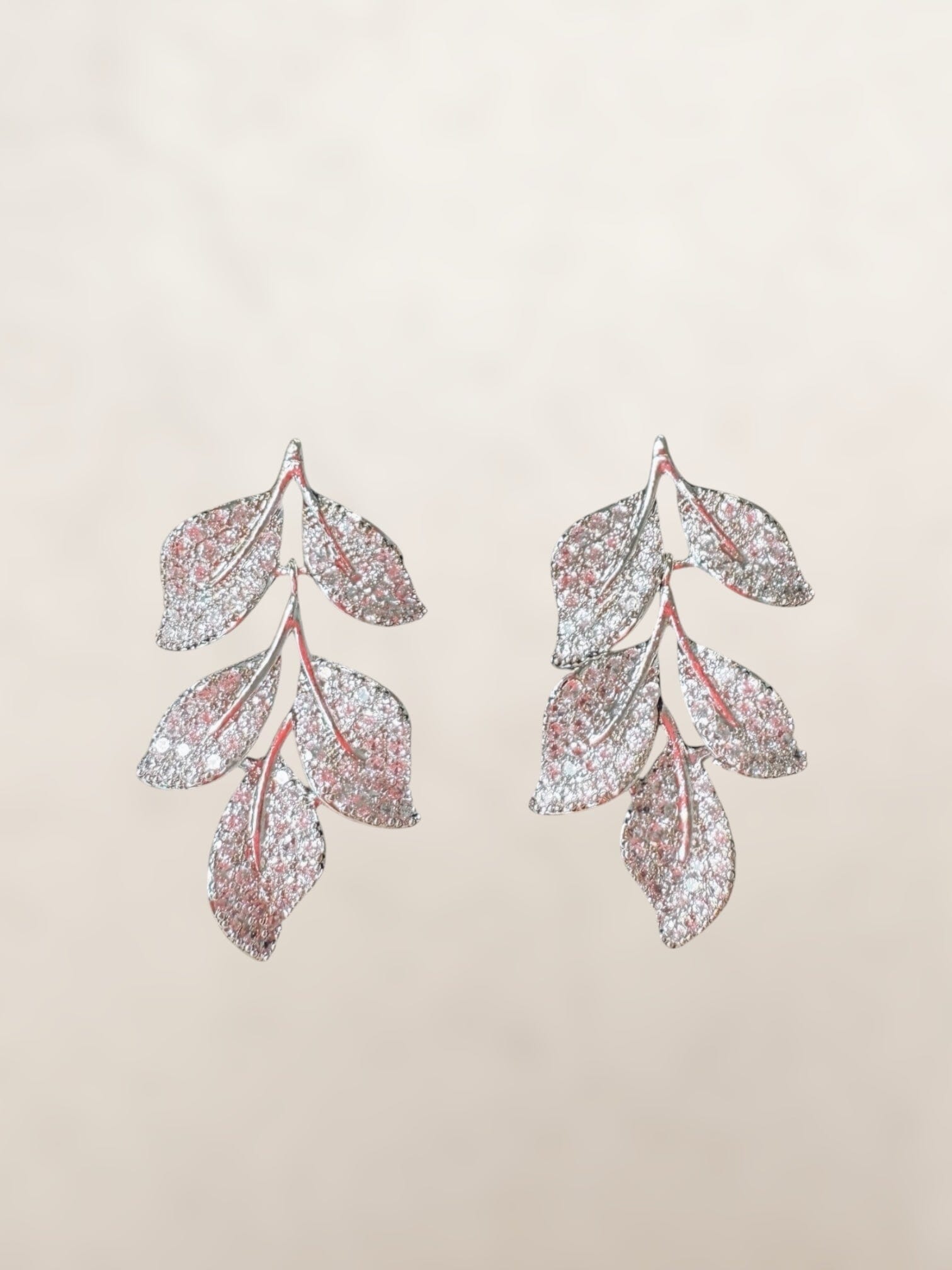|Soft, feminine and effortlessly statement-making, The Rosé Leaf Cascades are the kind of earrings that steal attention without ever feeling over the top. Designed in a flowing silver branch silhouette and embellished with sparkling blush-pink stones, they create a dreamy, jewellery-box-worthy mix of sparkle and romance.